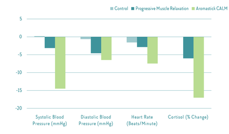 Results: The application of the inhaler showed consistent and large physiological and psychological effects. It clearly outperformed other stress management techniques, like progressive muscle relaxation, Bach flowers or passive resting periods (natural control). The observed effects of scents from the inhaler were about 300% larger then when diffused in the room.